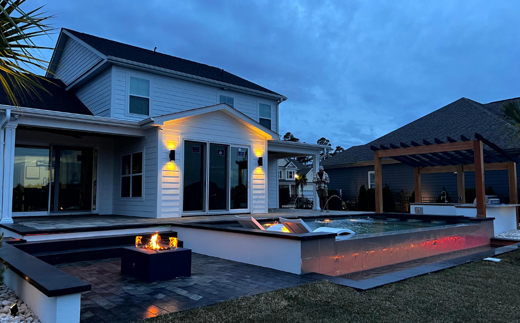 Patio in Blue → Custom Pool & Patio Design with LED Lighting in Myrtle Beach SC