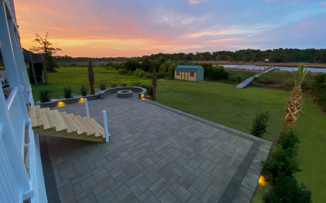 In this project, we showed off our skill in creating outdoor spaces that fit right in with our coastal area. By knowing the ins and outs of our region’s weather and landscape, we customized the design and materials to match exactly what our client wanted. The result? A beautiful space where the homeowners can gather around the fire and soak in that incredible view.