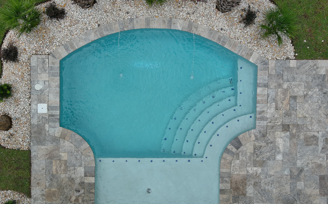 The customer worried their small yard wouldn’t fit their dream pool, one with a tropical vibe complete with waterfalls. But we made it happen! By incorporating different elevations and adding beautiful features, we turned their backyard into a tropical resort. One standout is the waterfall we custom-designed for the pool. Now, their outdoor space is a dreamy backyard paradise.