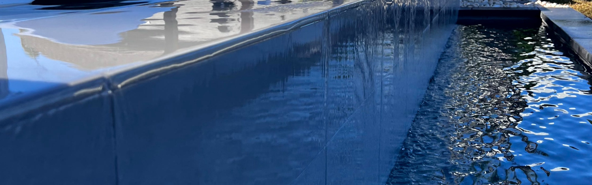 Stylized line art of pool ladder and waves, suggesting custom pool builder theme, with bold white lines on a black background.